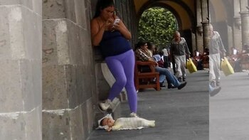 En la foto, compartida en Facebook por la usuaria Silvia Enciso, se ve a la madre en las afueras del Palacio Municiapl de Guadalajara, en México. Al bebé, de pocas semanas, puede vérselo durmiendo sobre una pequeña manta en la vereda.