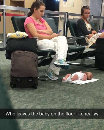 Similar reacción causó en las redes la foto de una mujer que usaba su celular mientras su pequeño bebé dormía en el suelo de un aeropuerto norteamericano.