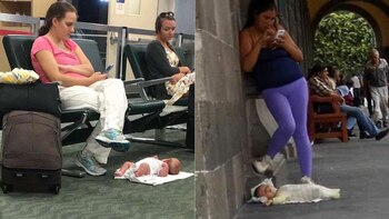 Dos fotografías se viralizaron en los últimos días provocando la furia de miles de usuarios de redes sociales. El público mostró su disgusto por la actitud de dos madres que a simple vista aparentan haber dejado a sus bebés tirados en el piso mientras utilizan sus teléfonos celulares.