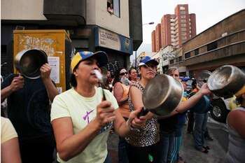 El ruido de los cacerolazos resonó en distintas partes de Venezuela esta noche, después que la coalición opositora Mesa de la Unidad Democrática nacional lo convocara en solidaridad con los venezolanos que se manifestaron espontáneamente contra el presidente Nicolás Maduro en Isla de Margarita y estuvieron detenidos durante varias horas por un operativo de agentes del Servicio Bolivariano de Inteligencia (Sebin).