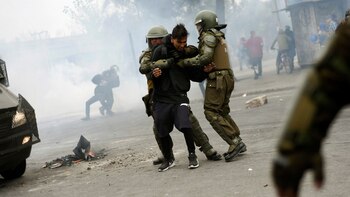 Según informaron este lunes fuentes policiales, un cabo de Carabineros identificado como José Campusano Pino recibió anoche un disparo en la pelvis durante un enfrentamiento con manifestantes en el municipio de San Joaquín, en el área sur de Santiago.