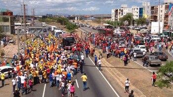 Grupos de manifestantes oficialistas, vestidos de rojo, trataron de impedir que los simpatizantes de la opositora Mesa de la Unidad Democrática (MUD) llegaran a Villa Rosa, y en el choque se lanzaron también piedras y palos, según imágenes captadas por la prensa.