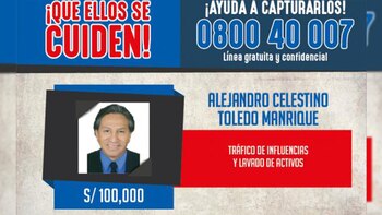 La Justicia peruana emitió una orden de captura internacional y prisión preventiva de 18 meses para Toledo por recibir supuestamente 20 millones de dólares de Odebrecht para favorecerla con la construcción de la carretera interoceánica que une Perú con Brasil.