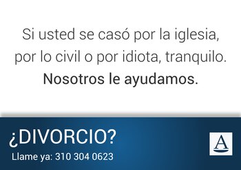 Una nueva campaña promocionada por un estudio de abogados de Bogotá, Colombia está en el centro de la escena. Especializados en divorcios, los letrados de esa entidad decidieron realizar un aviso que sobrepasó los límites formales que esas firmas suelen mostrar y que se viralizó en las redes sociales.