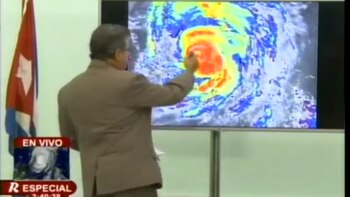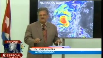 "Dr. José Rubiera, meteorólogo". Ese es el título que puede leerse durante la transmisión que la televisión de la dictadura cubana hizo del huracán Irma, mientras estaba atravesando la isla, desde La Habana.