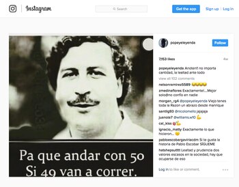 Sus cuentas de Instagram —también con más de 200.000 seguidores—, Twitter y Facebook lo promovieron a "Popeye Leyenda". Se lo ve mostrar el antebrazo, orgulloso de su tatuaje "El general de la mafia".