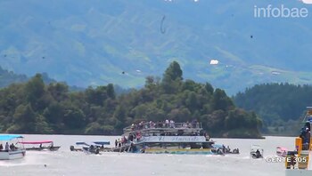 Un video difundido a través de las redes sociales muestra el momento en que la embarcación "El Almirante" naufraga en la represa colombiana de Guatapé.