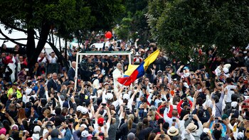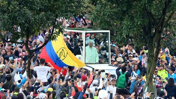 Su Santidad llegó al Parque, ubicado al oeste de Bogotá, en el papamóvil ante la algarabía de los feligreses que desde muy temprano se concentraron para escuchar la misa.