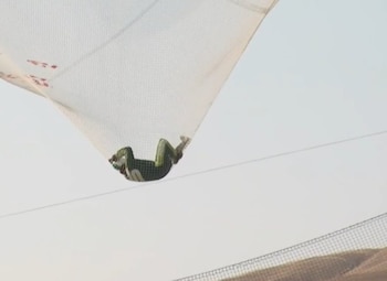 Para no perder de vista la red, el deportista extremo esperó al último segundo para ponerse en la posición específica de caída. Y lo logró exitosamente.