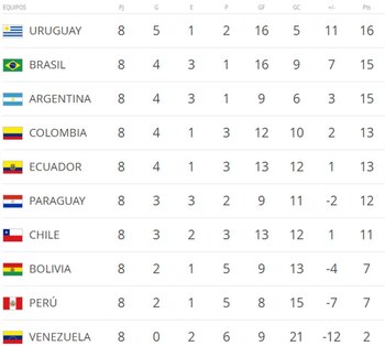La posición en el trono que ocupan los uruguayos es amenazada por Brasil y la Argentina, ambos escoltas con 15 puntos. Se enfrentarán a Bolivia y a Perú, respectivamente.