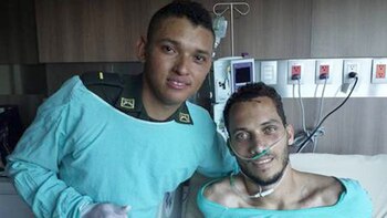 "Gracias", le atinó a decir el defensor del Chapecoense, quien se encuentra recuperándose de sus lesiones, al rescatista de Antioquia. "Es mi deber como policía", contestó.