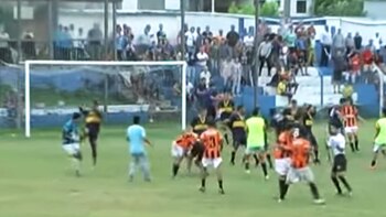 El inconveniente surgió cuando uno de los futbolistas agredió a un rival con un cabezazo y a partir de ese momento el resto de los jugadores se sumó a la pelea, que terminó en escándalo.