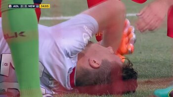 El violento impacto sacudió el arco y causó la preocupación de todo el Hindmarsh Stadium. Ese mismo malestar se trasladó al banco y el personal médico no dudó en ingresar rápidamente.