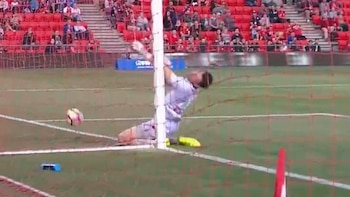 La escalofriante jugada ocurrió a los 33 minutos del primer tiempo. Hasta entonces el marcador estaba igualado en cero y un pase en profundidad de un futbolista de los Jets quedó en la cabeza de Morten Nordstand, que sorprendió al portero con una vaselina.