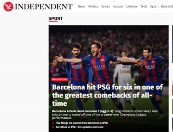 La increíble clasificación del Barcelona también tuvo una fuerte repercusión en otros países, más allá de España y Francia. En el Reino Unido, los diarios The Sun y The Independent hablan de la "mejor remontada de la historia".