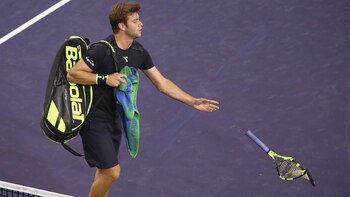 En este caso, lanzó la raqueta contra la superficie dura del BNP Paribas Open y no satisfecho, después de felicitar a su rival, destrozó otras dos que tenía de repuesto. Finalmente, antes de abandonar el campo, juntó todos los restos que habían quedado disipados en la cancha.