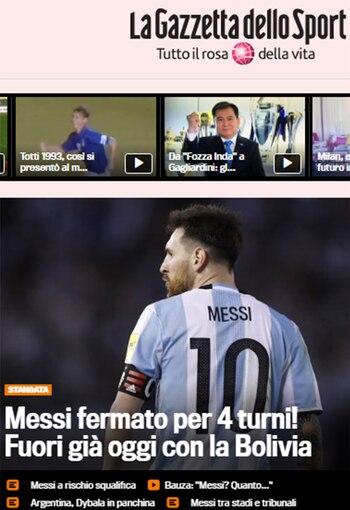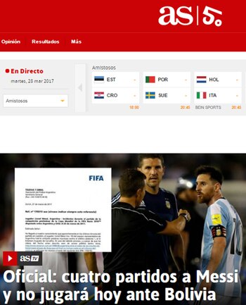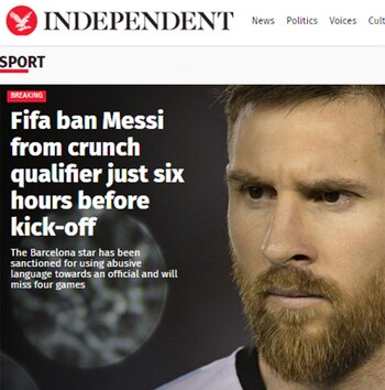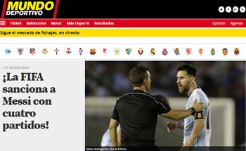 Que uno de los mejores futbolistas del mundo sea suspendido, y eso implique su selección busque la clasificación al Mundial sin él es digno de acaparar la atención de todo el planeta deportivo. Por ello, las portadas de la prensa mundial se hicieron eco de la sanción de la FIFA de cuatro partidos sin jugar para Lionel Messi.