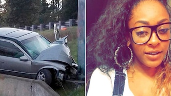 Chyna Thomas viajó durante 15 metros de esa manera hasta que terminó saliéndose del asfalto y chocando contra un poste. Las pericias afirmaron que no llevaba el cinturón de seguridad.