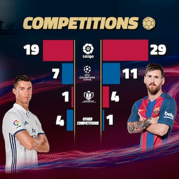 La temporada de Messi no tiene nada que envidiarle a la de Cristiano Ronaldo, incluso lleva más goles. Son 45 del argentino contra 31 del portugués en el acumulado de todas las competiciones en la campaña 2016/2017. El argentino notó 29 tantos en 28 partidos de Liga, donde va camino a quedarse con el 'Pichichi'.