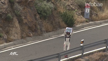 Afortunadamente, las vayas de metal evitaron que el vehículo cayera al vacío, lo que hubiera provocado una tragedia mucho mayor. Pocos minutos más tarde el polaco salió del coche con un cartel que decía que estaba "OK".