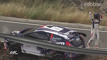 El piloto de Ford, de 24 años, se estrelló contra una barrera de contención después de intentar tomar una curva a gran velocidad. Tras el derrape, el guardarraíl afortunadamente pudo soportar el peso del automóvil y el logró salir ileso.