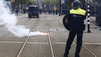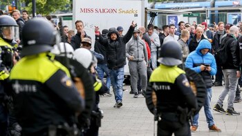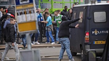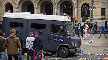 Los momentos de mayor tensión se vivieron en dos puntos de la ciudad. En Coolsingel, una de las avenidas principales, se produjeron al menos 30 detenciones, según el periódico AD. Uno de los arrestados fue un aficionado que estaba dando patadas a los furgones policiales que pasaban a toda velocidad a su lado. Cuando fue detenido, otros arrojaron botellas de vidrio contra los agentes para intentar que retrocedieran, pero la mayoría de ellas se estamparon contra los vehículos blindados que protegían a los antidisturbios.
