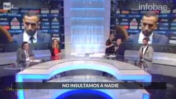 Cuando se disponía a dar su opinión acerca del partido, escuchó que alguien lo insultó y quiso saber quién había sido. El panel de periodistas aseguró no haber oído nada.