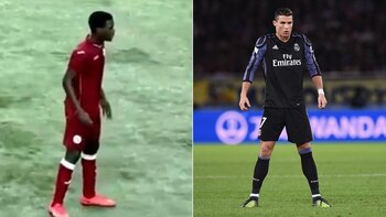 El zaguero se paró frente a la pelota, retrocedió uno pasos, separó los brazos del cuerpo y respiró hondo, copiando la ceremonia que suele realizar el delantero portugués Cristiano Ronaldo antes de ejecutar una falta. Sin embargo, se diferenció del punta al momento de patear.