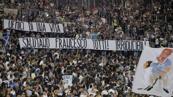 "Los enemigos de toda una vida saludan a Francesco Totti", fue la bandera que desplegó el grupo más radical del estadio Olímpico de Roma en el partido que se enfrentó ante el Inter por la fecha 37 de la Serie A.