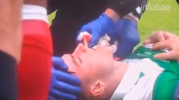 El brutal impacto se produjo a los 27 minutos del partido, cuando el delantero Jayden Stockley golpeó en la boca a su rival, y Tom Rogic tuvo que reemplazarlo cuando abandonó el campo de juego para ser atendido.