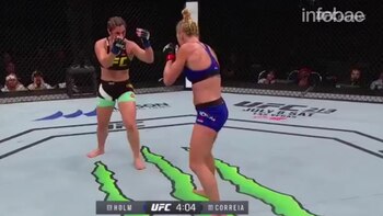 La ex campeona Holly Holm, quien supo vencer a Ronda Rousey, fue la protagonista de un brutal nocaut, tras conectarle una agresiva patada en la cabeza a la brasileña Bethe Correia.