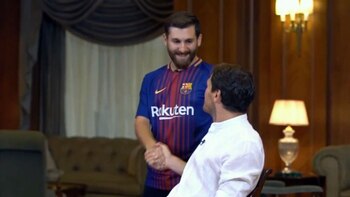 En un momento de la conversación, el reportero le preguntó qué le diría al argentino si lo tuviera en frente. En medio de la respuesta el imitador del "diez" azulgrana lo interrumpió.