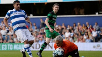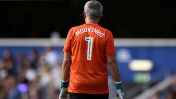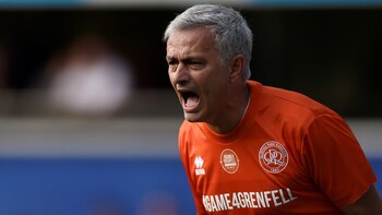 El extrovertido entrenador del Manchester United, José Mourinho, ofició de arquero durante los últimos minutos del partido a beneficio que se llevó a cabo en el oeste Londres por el incendio que consumió la Torre Grenfell