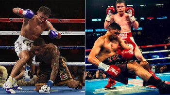 2- Amir Khan: En mayo del 2016, en el T-Mobile Arena de Las Vegas, mismo escenario en el que se medirá ante "GGG", el mexicano derrotó con un tremendo nocaut en el sexto al británico Amir Khan en su primera defensa del título mundial de los medianos del Consejo Mundial de Boxeo.
