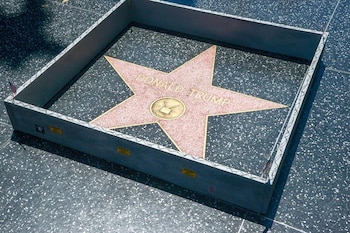 Un pequeño muro con alambre en su parte superior ha aparecido rodeando la estrella que el candidato republicano a la presidencia de los Estados Unidos, Donald Trump, tiene en el célebre Paseo de la Fama de Hollywood en Los Ángeles.