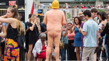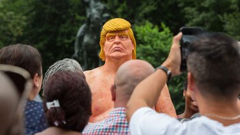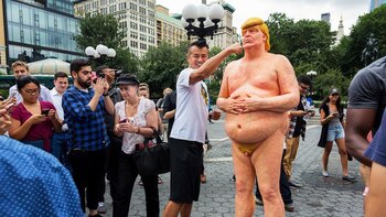 Los ciudadanos estadounidenses y turistas que este jueves estaban paseando por la zona sur de Union Square Park, en Manhattan, se llevaron una sorpresa al toparse con una estatua de Donald Trump totalmente desnudo.