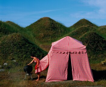 Adrienne Pao dice que sus sesiones de fotografía desafían el calor, el viento y los colpasos potenciales, "El proceso de construcción es también muy lento. Trabajamos tres meses al año para hacer una tienda de campaña. Observamos el lugar en el que se quiere hacer el cuadro, y el rodaje en sí tiene al menos un día completo".