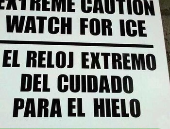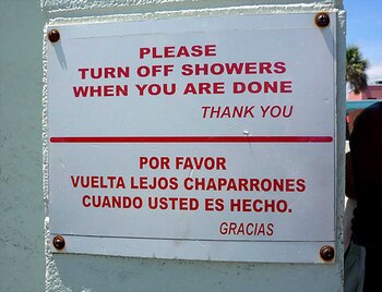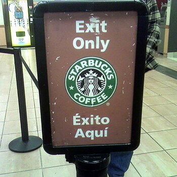En la fila de una cafetería, se les promete a los clientes: "Éxito aquí" ("Exit Only": "Salida únicamente" hubiera sido una traducción más acertada). En una piscina para niños se les advierte a los adultos "Ninguna natación" ("No Swimming" en el original, o "Prohibido nadar"). En el monorraíl del aeropuerto se exige a los viajeros "Tenga barandilla" ("Hold Handrail", es decir "Sosténgase del pasamano") y se les solicita que dejen el caballo, mas no el calzado, antes de pasar de una terminal a otra: "Ningún cabalgar descalzo", en el original "No Riding Barefoot", o "No montarse descalzo". "Busca empleo" aconseja una pizzería, que en realidad quiere contratar un empleado "Help wanted" ("Se necesita personal"). Al borde de lo místico, un anuncio en un edificio dice: "En el acontecimiento del fuego no utilice las elevaciones" ("In the event of fire do not use lifts", o "En caso de incendio no use los elevadores").