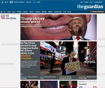 El británico The Guardian tituló: "La victoria de Trump asombra el mundo". Debajo del título principal, un comentario del periodista Jonathan Freedland señala: "EEUU eligió el líder más peligroso. Todos tenemos mucho para temer".