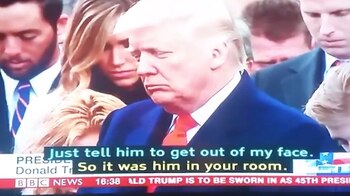 El texto, irrisorio, no guardaba relación alguna con lo que ocurría en la pantalla y en Washington DC. Este fue el diálogo reproducido por la cadena británica.