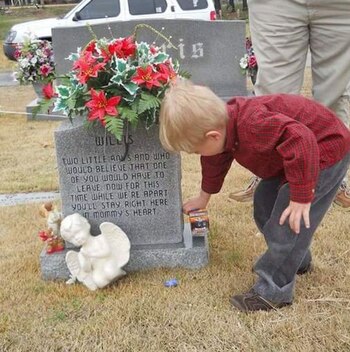 A partir de entonces, era usual que el pequeño le pidiera visitarlo en su tumba. "Walker tenía cinco y recién comenzaba el kinder. Nos dijo que quería contarle a Willis sobre su inicio escolar", recuerda Brooke, de 33 años. "Lo vi sentado allí y sabía que tenía que capturar la fotografía", añadió.