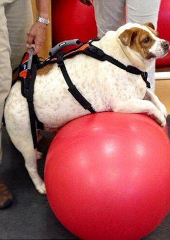Una perra que una vez pesó tanto como un lavaplatos ahora está inspirando a personas con sobrepeso. Pearl, una mezcla con Jack Russell, fue una vez tan obesa que estuvo en riesgo de ser, pero desde entonces ha bajado más de 17 kilogramos gracias a una dieta estricta y el uso de una caminadora submarina.