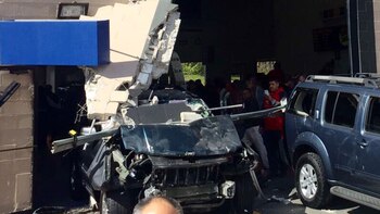 El episodio ocurrió justo después de las 10 de la mañana. Los testigos revelaron a la señal WFXT-TV que un hombre en un jeep se estrelló contra la subasta llena de gente. Las imágenes de helicópteros muestran al vehículo incrustado en una pared.