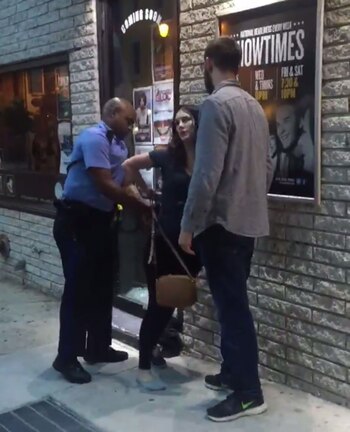 La joven había sido expulsada del show del comediante Craig Robinson por estar continuamente hablando en voz alta durante su desarrollo, lo que molestaba a los demás asistentes al espectáculo. Desde la organización se le advirtió tres veces que no podía continuar con ese comportamiento. Al continuar, fue sacada por personal de seguridad de la sala a quienes comenzó a pegarles y empujarles.