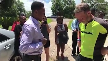 Para superar el dolor de la pérdida y crear con conciencia sobre la importancia de la donación de órganos, Bill salió a recorrer Estados Unidos en bicicleta. Desde su casa en Wisconsin pedaleó más de 4 mil kilómetros. El día del padre llegó a Baton Rouge, en el estado de Luisiana. Y allí se encontró con un hombre muy especial.