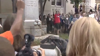 La protesta estaba convocada inicialmente para reclamar el retiro de esa misma estatua y de todos los símbolos confederados que quedan en Carolina del Norte "para que no maten a más gente inocente".