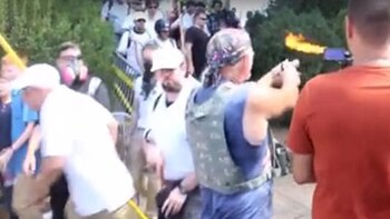 Según consigna Daily Mail, el hombre disparó al piso, cerca de los protestantes, para dispersarlos.