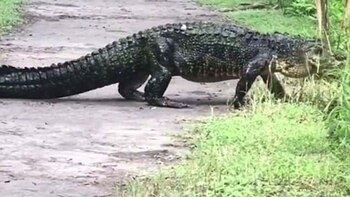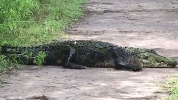 "Estaba disfrutando de una agradable caminata dominical con la familia cuando un gran caimán cruzó un sendero justo delante nuestro", escribió el hombre a través de las redes sociales.