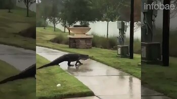 Tal vez algo desorientado por la situación y arrastrado por el agua, el reptil fue grabado durante varios segundos en la vía pública hasta que se perdió entre los arbustos. Más allá de que pueda resultar simpático, el video alerta sobre los peligros que conlleva el paso del huracán.