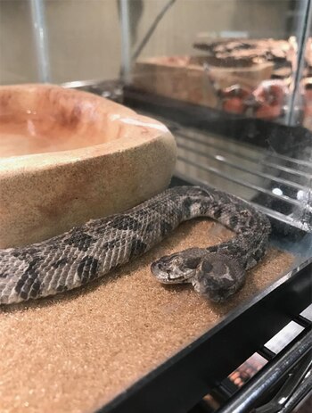 La serpiente aún no ha sido bautizada, pero parece acostumbrarse a su nuevo hogar, donde planean ponerla en exhibición.